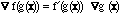 equivalently, grad f(g(x)) = f'(g(x)) grad g(x)